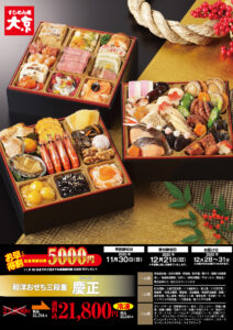 毎年ご好評を頂いております、大京のおせち料理の受付がスタートしました。