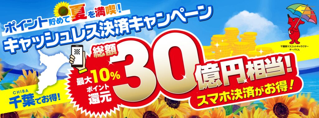千葉でお得!還元額30億円相当!キャッシュレス決済で最大10%還元キャンペーン