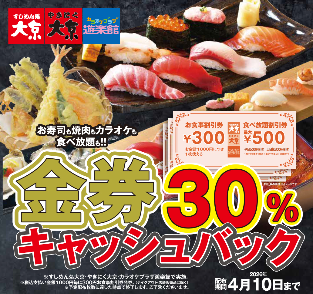 2026年1月5日 / 最終更新日時 : 2026年1月5日 大 京 30%キャッシュバック◆1月5日からスタート!! 大好評のキャッシュバックキャンペーン!今年も開催いたします!皆さまおご来店をお待ちしております! イベント情報はこちら ご予約★お問合せ★店舗情報はこちら★