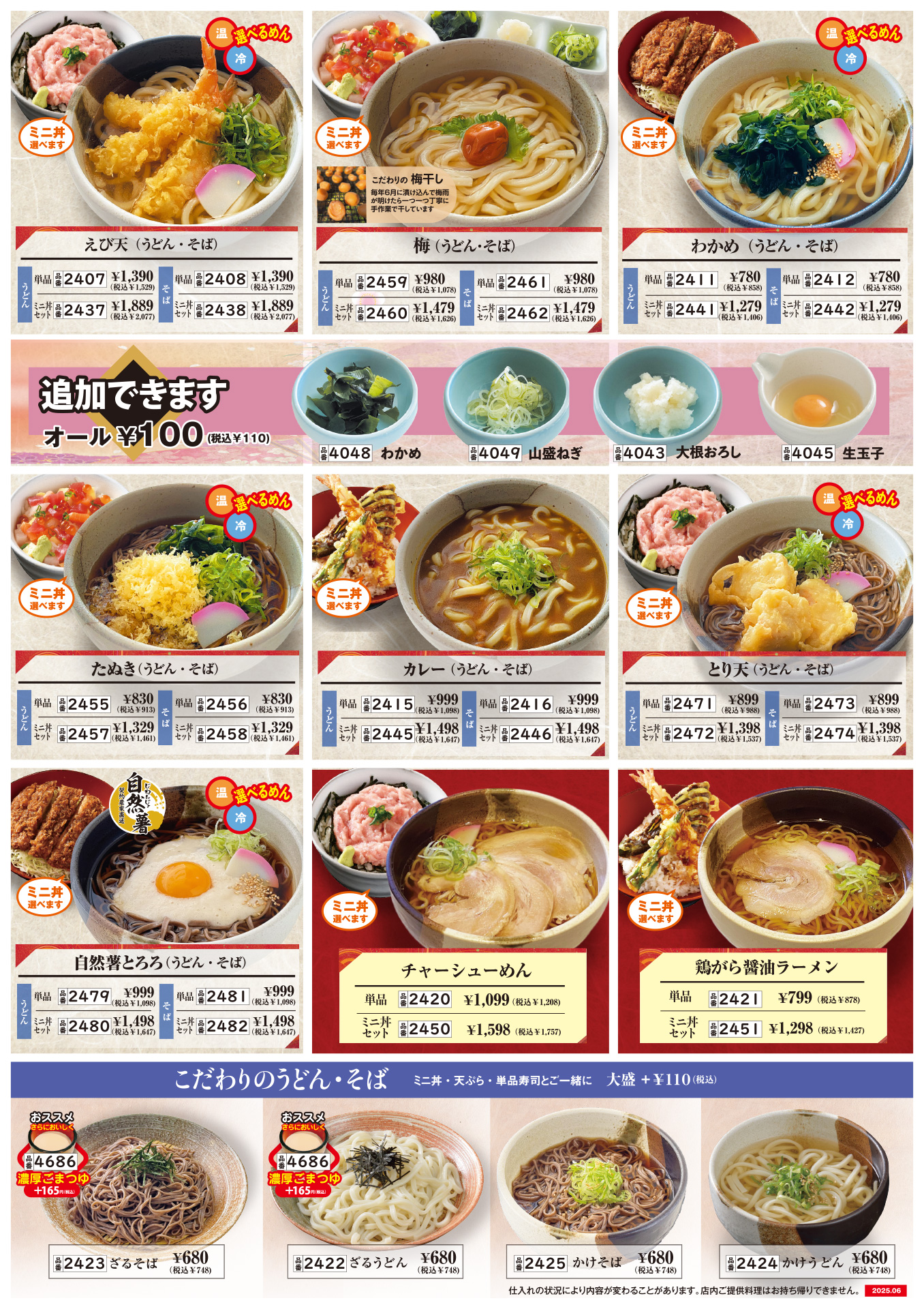土気店、浜野店のメニュー